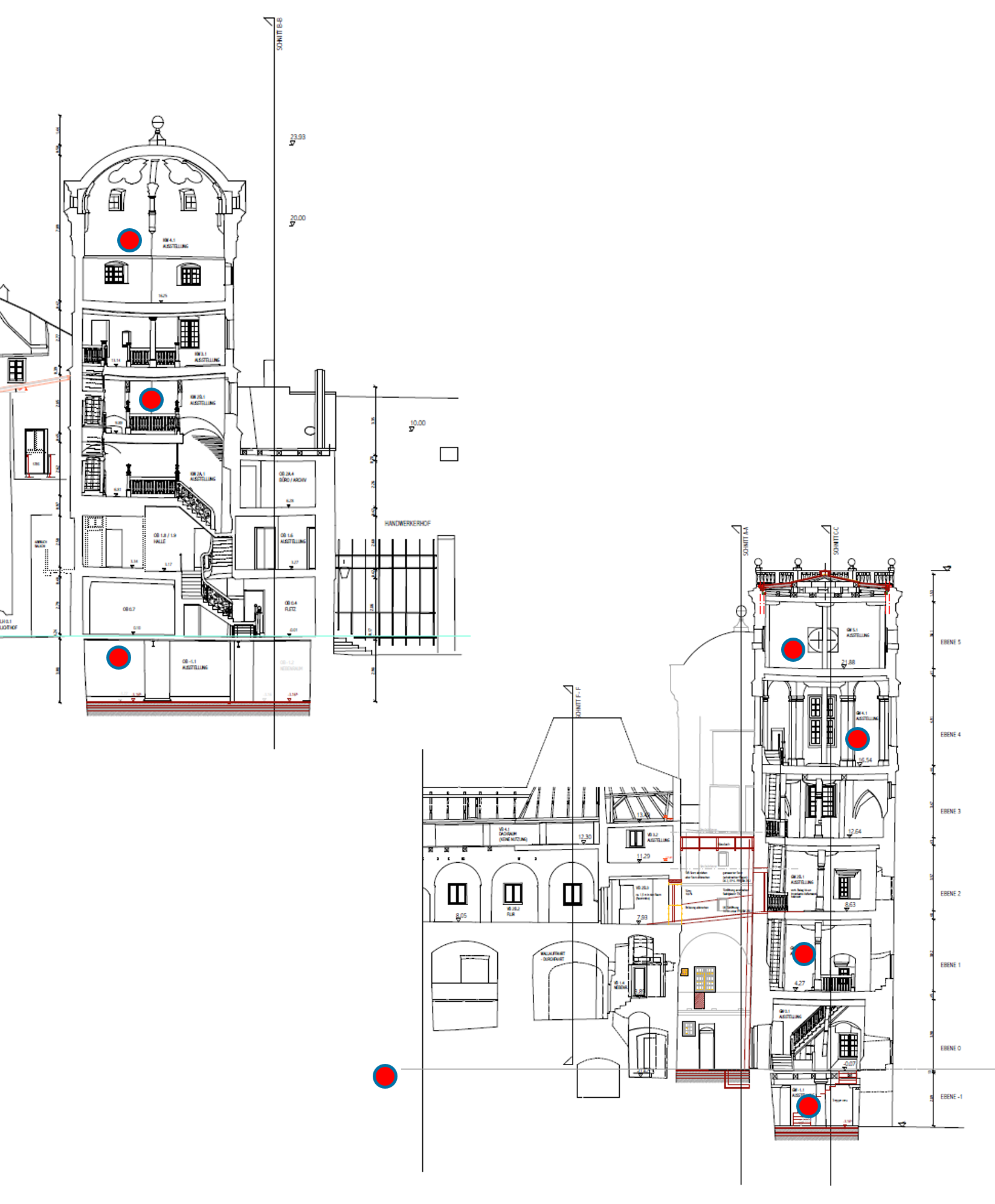 Um ein präzises, kontinuierliches und zerstörungsfreies Monitoring zu ermöglichen, wurde ein gemeinsames Projekt verschiedener kommunaler und fachlicher Akteure realisiert – darunter das UNESCO‑Welterbebüro, das Amt für Denkmalschutz, das Hochbauamt, das Amt für Liegenschaften, die SmartCity‑Geschäftsstelle, das Geodatenamt sowie die örtlichen Stadtwerke. Auf Basis energieeffizienter IoT‑Sensorik wurden insgesamt 16 Geräte mit 46 Messpunkten installiert, die täglich rund 4.000 Messwerte liefern. Erfasst werden unter anderem Luftfeuchtigkeit, Temperatur, Bewegung, Lautstärke, Personenfrequenzen, Lichtstärke, Spannung und CO₂‑Konzentration. Die Sensoren nutzen die bereits vorhandene Funk‑Infrastruktur (z. B. LoRaWAN), funktionieren wartungsfrei und können ohne Eingriff in die Bausubstanz montiert werden. Die gesammelten Daten erlauben ein besseres Verständnis mikroklimatischer Veränderungen und bilden die Grundlage für einen präventiven Denkmalschutz, der Schäden erkennt, bevor sie entstehen.